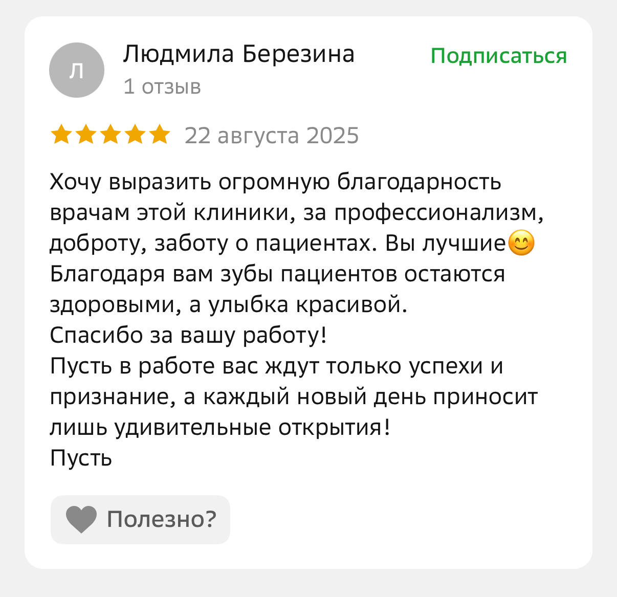 Выбрав нашу стоматологическую клинику, вы будете уверены в здоровье ваших зубов. Ваша улыбка для нас больше, чем просто зубы.